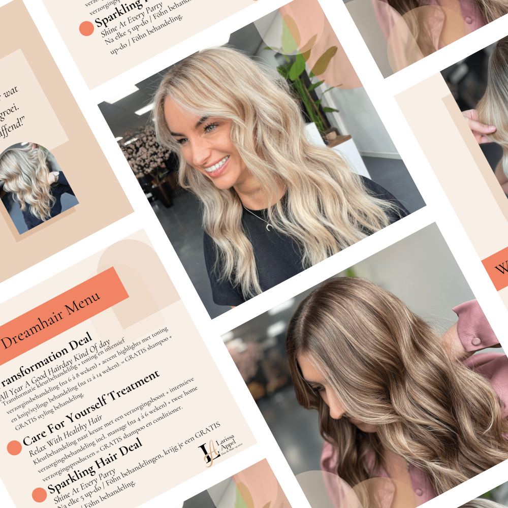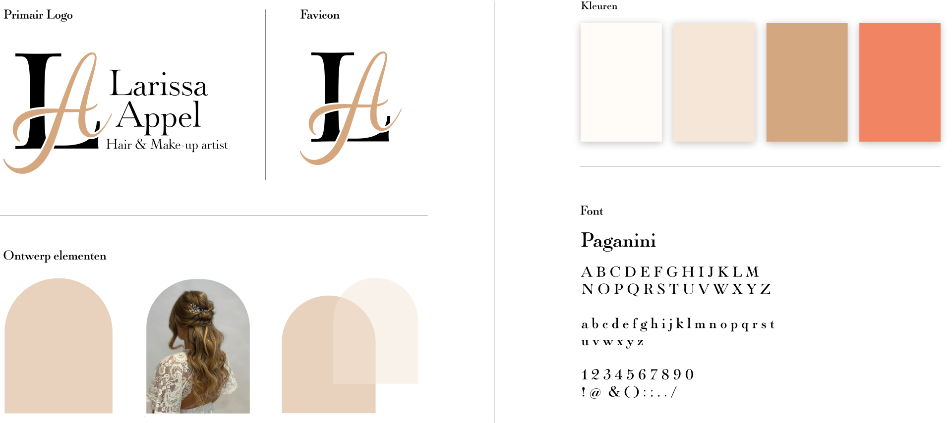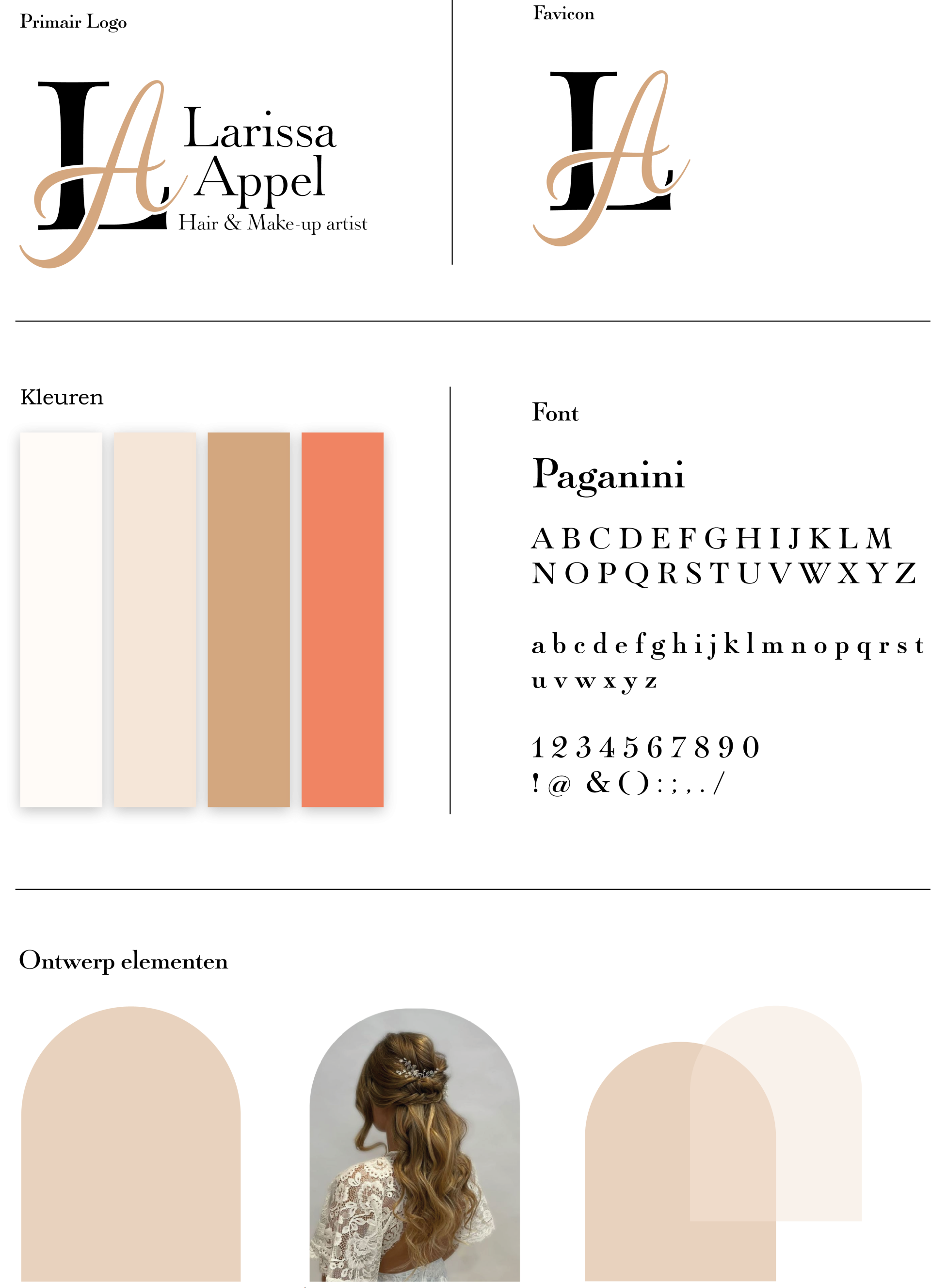 Larissa Appel begon haar eigen salon als hair & make-up artist en had behoefte aan een professionele uitstraling die bij haar stijl en klanten past. Ze zocht iemand die zowel een huisstijl kon ontwerpen als een website kon bouwen waarop haar diensten, prijzen en make-over resultaten duidelijk zichtbaar zijn. Daarnaast wilde ze het klanten zo makkelijk mogelijk maken om online een afspraak te boeken.
